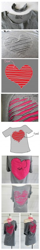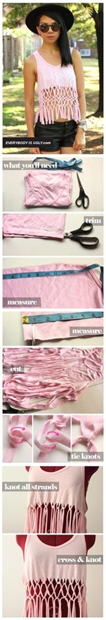 เคยใส่เสื้อเชิ้ตแล้วปลดกระดุมเม็ดสุดท้ายเอาชายมาผูกกันมั้ยคะ แบบนั้นแหละค่ะ ตัดชายเสื้อให้สั้นขึ้น โดยเหลือปลายเป็นหู2ข้าง ตรงกลางด้านหน้า ตามภาพ เอาไว้ผูกกันไงคะ ยิ่งเสื้อยืดที่มีลายน่ารักๆแล้วหละก็ ทำออกมาจะเพิ่มความน่ารักเข้าไปอีกค่าาา