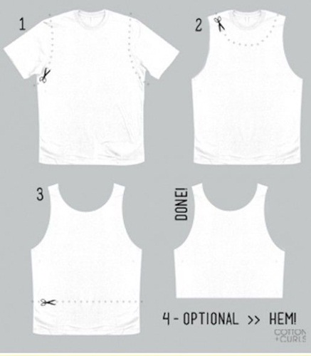เริ่มกันเลย ลองไปหามาซิ เสื้อยืดตัวเก่า หรือ ของพี่ชาย ไม่ก็แอบเอาเสื้อตัวเก่าของพี่สาวมาก็ได้ กรรไกรคมๆ1อัน เข็มและด้าย และสุดท้ายก็พวกลูกปัด หมุดสีเงินต่างๆจ้า มาเลย