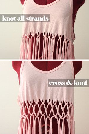 เสื้อยืดสีสดใส นำมาตัดชายเสื้อ เป็นริ้วๆตรงๆตัดเป็นริ้ว ขนาดกว้างประมาณครึ่งนิ้ว ตัดให้หมดเลยค่ะ จากนั้นน้ำแต่ละเส้นมาผูกจับคู่กันจนหมด ตามภาพ สุดท้ายมัดปลายแต่ละเส้นให้เป็นปมด้วยนะ กันลุ่ย หรือ สาวๆสามารถใส่ลูกปัดเข้าไปแต่ละเส้นก่อนมัด ก็น่ารักดีนะคะ