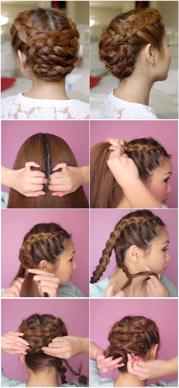 2. แล้วก็ถักเปียนูนทีละข้างไปด้านหลัง วิธีการถักก็เหมือนเปียตะขาบแต่สลับด้านกันค่ะ