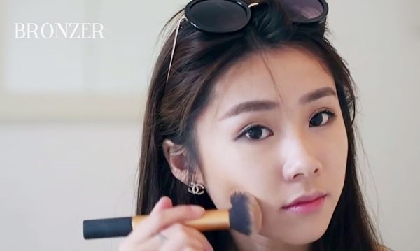 7. ปัดบรอนเซอร์ที่กรอบหน้า ไล่มาตั้งแต่หน้าผาก ข้างแก้ม กราม และคาง เพื่อให้ดูหน้าเรียว