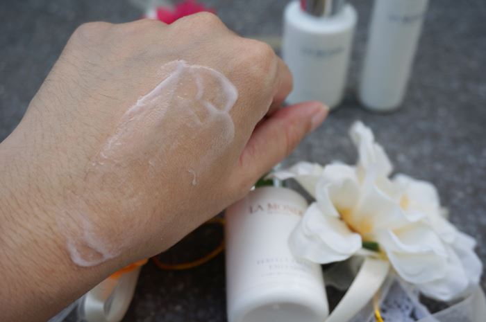 Perfect Facial Emulsion เป็นเนื้อน้ำนมสีชมพูอ่อนๆ กลิ่นน้ำหอมค่อนข้างแรงนิดนึง ตอนทาต้องใช้มือนวดๆ ไปบนผิวหน้าและตบเบาๆ เล็กน้อย ก็ซึมเข้าผิวไม่เหนียวเหนอะ