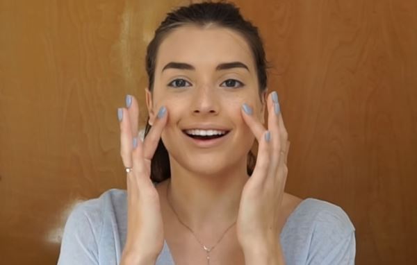 5. แตะครีมบลัชที่ปลายนิ้วชี้ทั้งสองข้าง แล้วเกลี่ยเข้าด้วยกัน