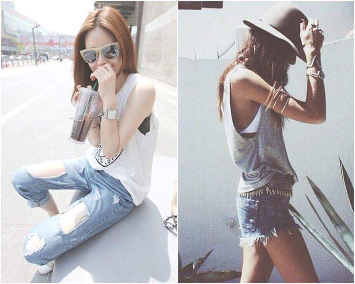 จะหยิบเสื้อกล้ามขนาดพอดีตัวมาใส่คู่กับกางเกงยีนส์ขาเดฟ หรือใส่กับขาสั้น ขาบานก็ได้ ถ้าอยากให้ดูวินเทจหน่อยก็ใส่เสื้อกล้ามเข้าไปในกางเกงด้วย หรือถ้าอยากใส่สบายก็เลือกเสื้อกล้ามตัวใหญ่ หรือตัวยาว เอามาจับคู่กันได้เลย ส่วนใครที่กลัวโป๊แนะนำให้ใส่เสื้อเกาะอกไว้ด้านในค่ะ โชว์เกาะอกให้แพลมออกมานิดๆ เก๋จะตาย ถ้ายังนึกไม่ออกลองไปดูกันเลยดีกว่าเนอะ