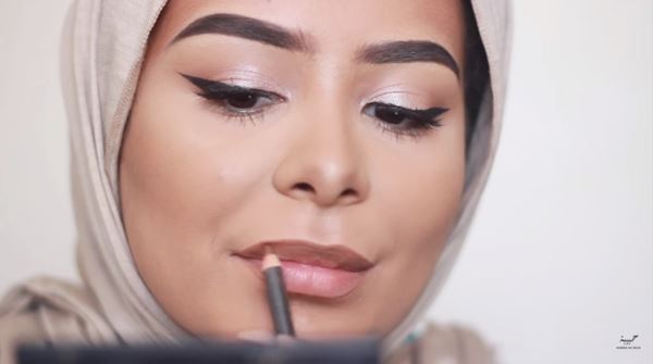12. ใช้ดินสอเขียนขอบปากสีน้ำตาล วาดขอบปากให้หนาขึ้นเล็กน้อย