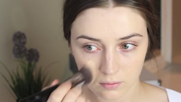 5. ใช้แปรงพุ่มใหญ่แตะแปรงฝุ่นลงทั่วหน้าเพื่อเซ็ตรองพื้นและคอนซีลเลอร์ให้ติดทน ใช้แป้งสีสว่างเซ็ตใต้ตาด้วย