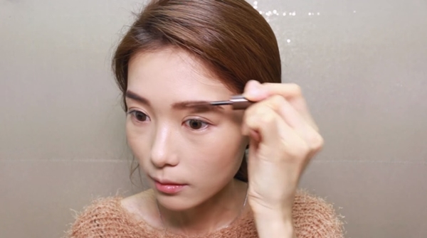 8. เขียนคิ้วให้เป็นทรงโค้งชัดเป๊ะแบบฝรั่ง ไม่เอาคิ้วตรงนะจ๊ะ จากนั้นก็ปัดด้วยมาสคาร่าคิ้ว