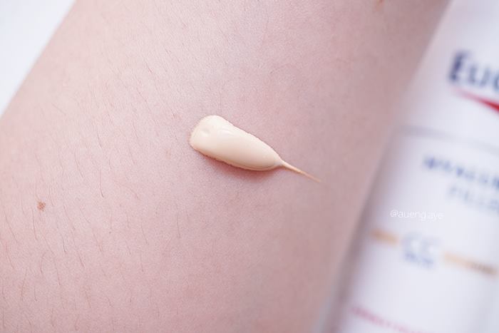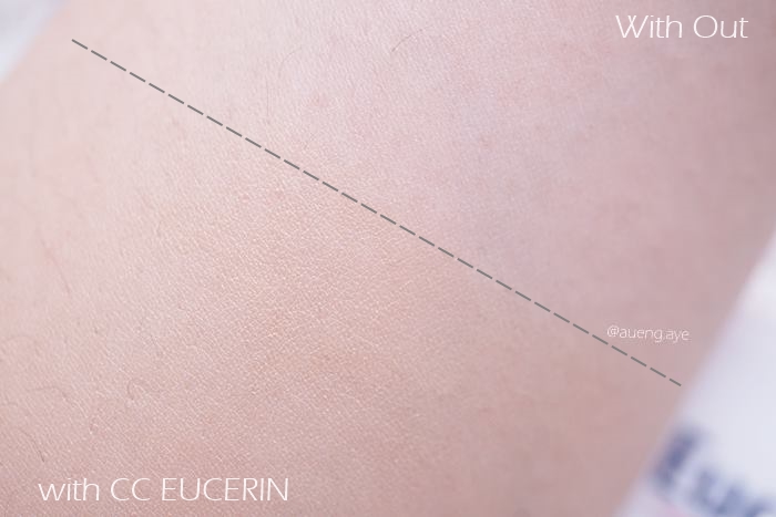 เอิงได้ขวดนี้มาลองใช้เกือบเดือนแล้ว เนื้อ CC Cream เขาค่อนข้างเบา สามารถอำพรางริ้วรอยได้ดี เบลอผิวให้ดูนวลและเติมเต็มร่องลึกต่างๆ ให้แลดูตื้นขึ้นด้วย ส่วนตัวเอิงมีปัญหาที่ริ้วรอยใต้ตาที่แต่งหน้าแล้วจะตกร่องเป็นประจำ ตัวนี้ช่วยชีวิตเอิงได้ค่ะ แต่เรื่องความหมองคล้ำยังคงต้องใช้คอนซิลเลอร์ช่วยอยู่บางในวันบางวันที่แพนด้ามาเยือนแบบหนักๆ เนื้อครีมตอนเกลี่ยอาจจะรู้สึกเหนอะหนะนิดหน่อย แต่พอเซ็ตตัวแล้วจะกลืนไปกับผิว เบาสบายผิวมาก ให้ความชุ่มชื้นกับผิวได้ดี สาวผิวแห้ง ไปจนถึงผิวผสมถูกใจแน่นอน แถมมีส่วนผสมของสารบำรุง Hyaluron Nano Molecule 50X ทำให้ริ้วรอย ร่องลึกตื้นขึ้นด้วยเมื่อใช้อย่างต่อเนื่อง เป็นการแก้ปัญหาในระยะยาวให้สาวๆด้วยค่ะ (ส่วนสาวผิวมันอย่าเพิ่งน้อยใจ EUCERIN มีสูตรสำหรับผิวมันและเป็นสิวด้วย จะเป็นขวดสีส้มๆ)