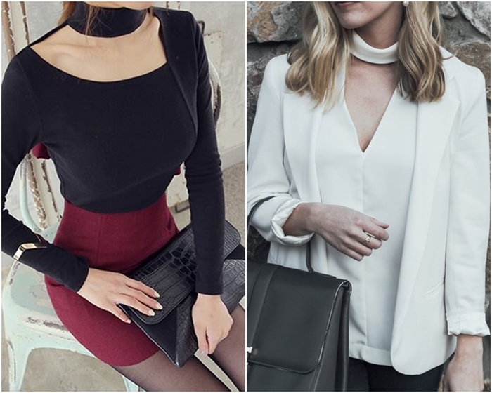 โดยเสื้อ Choker ส่วนใหญ่จะเป็นแบบเกาะอกแขนยาว และมีคอเสื้อแบบ Choker มาให้ในตัว นอกนั้นอาจจะเป็นเสื้อกล้าม, สายเดี่ยว, เดรส, เสื้อแขนยาว อะไรก็ว่ากันไป แต่ถ้าใครอยากตามเทรนด์นี้แบบง่ายๆ ไม่ต้องไปหาเสื้อ Choker ให้ยุ่งยาก ก็แค่เลือกผ้าสีเดียวกับเสื้อมาผูกเอาไว้ที่คอ แค่นี้ก็เริ่ดแล้วจ้ะ