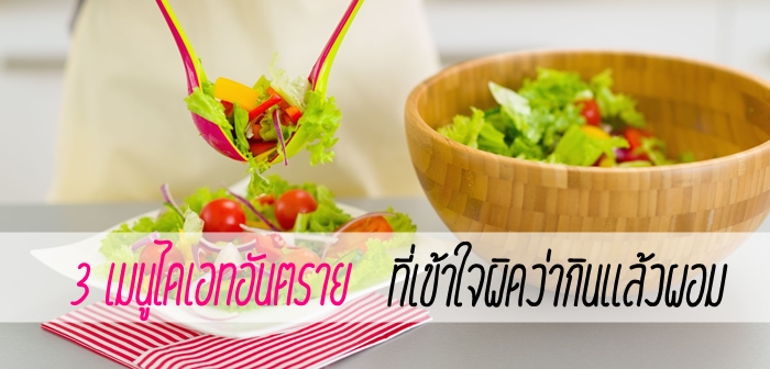 สลัด เมนูแรกๆที่ทุกคนนึกถึงเวลาไดเอท ผักเต็มๆชามให้พลังงานต่ำ กากใยอาหารสูง เป็นมิตรกันระบบขับถ่าย ถ้าทานแต่ใบผักสดๆนั้นจะทานเยอะแค่ไหนก็ได้จนกว่าจะอิ่มเอาให้เป็นที่ไปเลย แต่สิ่งที่หลายคนลืมนึกถึงไปคือน้ำสลัดที่เพิ่มรสชาติให้สลัดผักของเรานั้นเอง ซึ่งก็แล้วแต่ว่าใครชอบแบบไหน ชอบหวานหรือเข้ม หรือแบบเปรี้ยว แต่ทั้งหมดนี้ก็เป็นภัยกับการไดเอทของเราได้ เพราะเราไม่อาจรู้ได้ว่าน้ำสลัดที่เราเลือกทานนั้นอาจจะมีแคลลอรี่เยอะกว่าข้าวผัดสักอีก แนะนำให้เลือกน้ำสลัดแบบใ เพราะจะให้พลังงานที่น้อยกว่า ยังไงก็ลองเลือกยี่ห้อที่ให้พลังต่ำๆเข้าไว้ แต่ทานแต่น้อยจะดีกว่าค่ะ