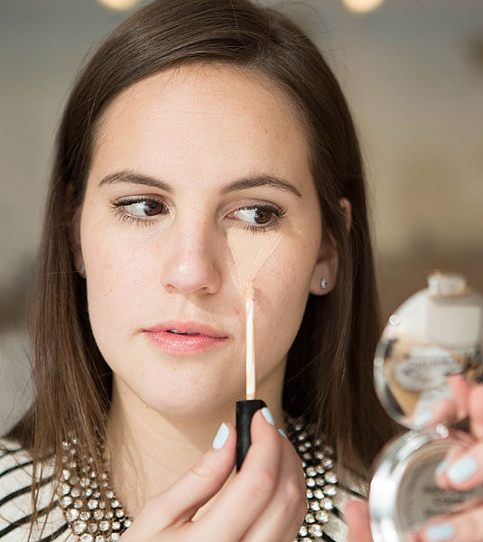 จริงๆแล้วการทาคอนซีลเลอร์ใต้ตามีเทคนิคง่ายๆแค่นิดเดียว ถ้าใครยังกลบแพนด้าไม่มิดหรือยังแต่งหน้าออกมาดูเลอะๆ ต้องเก็บข้อมูลนี้ไปให้ดี เทคนิคที่ง่ายแสนง่ายนี้คือการทาคอนซีลเลอร์ที่บริเวณมต้ตา “เป็นรูปสามเหลี่ยมคว่ำ” แล้วค่อยๆใช้นิ้วมือ ฟิงน้ำ หรือแปรงก็ได้ค่อยๆเกลี่ยเบลนให้กลืนไปกับผิว เทคนิคนี้นอกจากจะช่วยปิดรอยหมองคล้ใต้ตาได้อย่าถูกจุดแล้ว ยังแก้ปัญหาถุงใต้ตาได้ดีมาก แถมใบหน้ายังดูมีมิติมากขึ้นเพราะลงตรงจุดที่ขับหน้าดูพุ่งขึ้นมาพอดี