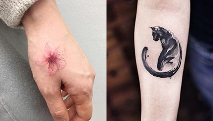 รอยสักเก๋ๆ นี่เป็นอะไรที่ดูเท่ดีเน๊อะ (ตราบใดที่ลายไม่ปนกันมั่วจนมันเละเทะหนะนะ) ถ้าใครที่หลงไหลรอยสักแบบ MINIMAL ตอนนี้รอยสักรอยมีความเก๋ขึ้นมาอีกขั้นโดยการเพิ่มเทคนิคแบบสีนี้เข้าไปด้วยทำให้รอยสักของคุณดูมีกิมมิคมากกว่าเดิม ถูกใจ ART ตัวแม่หลายๆคนแน่นอน โหยยย! ความฟุ้งของสีน้ำนี่ทำให้รอยสักดูแบ๋วเหมาะกับสาวสวย ทั้งสายหวานและสายเปรี้ยวอย่างพสกเราจริงๆ