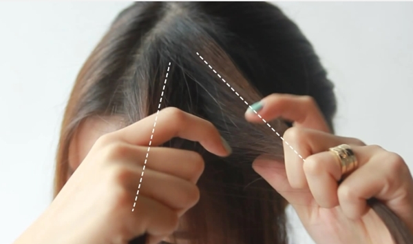 1. แสกข้างด้านไหนก็ได้ตามที่ชอบ แล้วแบ่งผมทั้งสองข้างออกเป็นช่อหน้า