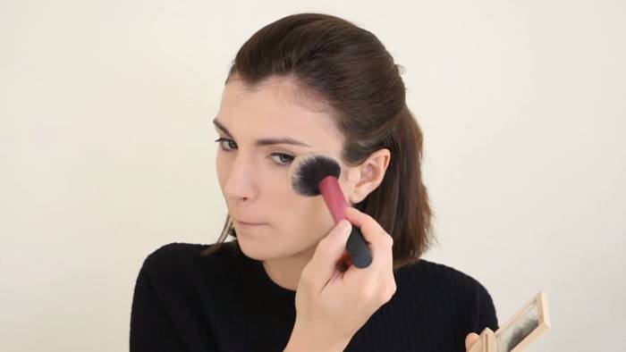 6. ปัดเฉดดิ้งที่กรอบหน้า ไรผม กราม และไล่บางๆ ไปเชื่อมต่อกับคอ เพื่อพรางให้ส่วนต่างๆ ดูเรียวลง