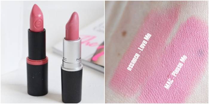 ลิปสติกโทนชมพูนู้ด MAC Plese me ที่สาวกแมคจะต้องมีเป็นแท่งแรกๆ ได้ถูกเขย่าบัลลังก์ด้วยงานเทียบอย่าง Essence Love me เบอร์ 13 ซึ่งราคาแท่งละ 100 กว่าบาทเองค่ะ สีออกโทนชมพูนู้ดคล้ายๆ กัน แต่ลิปแมคจะเนื้อแมทและติดทนกว่า แต่ถ้าใครไม่ซีเรียสเรื่องนี้ ก็ถือว่าถูกและแทนกันได้นะเออ