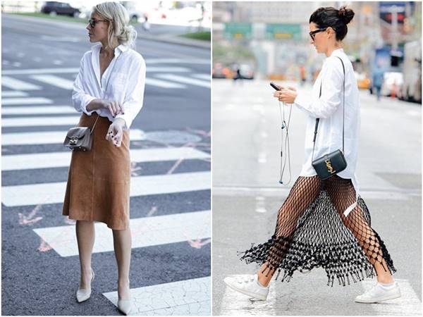 ส่วนวันไหนเกิดเบื่อกางเกงแล้วอยากดูผู้หญิงขึ้นมาอีกนิด ก็หยิบกระโปรงตัวโปรดมาจับคู่กับเสื้อเชิ้ตสีขาวได้เลยค่ะ จะเป็นกระโปรงสั้น กระโปรงทรงดินสอ หรือกระโปรงฟรุ้งฟริ้งแค่ไหนก็ตามใจ แต่ถ้ากระโปรงยาวก็ต้องเลือกที่ไม่รุ่มร่ามเกินไป จนดูรกนะคะ