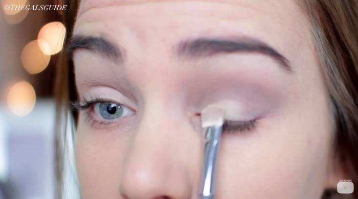 1. ลงรองพื้น+เขียนคิ้วไว้ก่อน แล้วทาเปลือกตาให้ทั่วด้วยสีน้ำตาลเบจเนื้อแมท