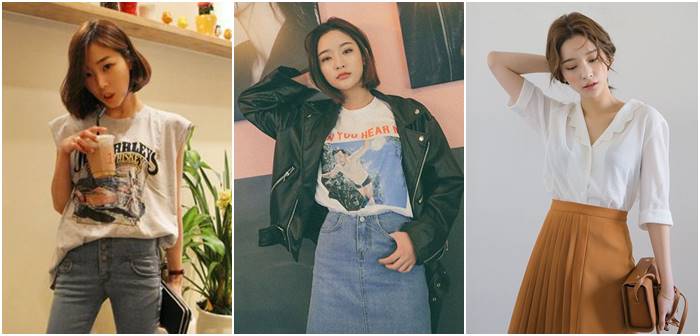 แต่ถ้าต้องออกงาน การใส่กระโปรงที่ยาวเท่าเข่าไม่สั้นเกินไป เลือกเป็นกระโปรงที่มีความพริ้วสักหน่อย ใส่คู่กับเสื้อยืดจะเป็นเสื้อยืดลายกราฟฟิคหรือ เสื้อยืดสีพื้นๆ ก็ให้ลุควินเทจแบบวัยรุ่ยน่ารักได้เหมือนกันน้า