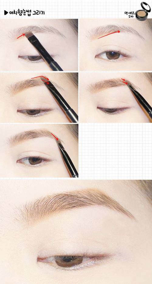 คิ้วตรงหน้าเด็ก สไตล์สาวเกาหลี และที่สำคัญ พวกเธอก็มีคอนเซปต์ไม่แพ้สาวไทยตรงที่ พวกเธอก็เชื่อว่า คิ้วคือมงกุฎของหน้าเหมือนกัน และการเขียนคิ้วของพวกเธอจะต้องเข้มและดูเป็นธรรมชาติ