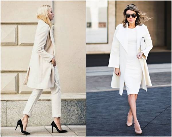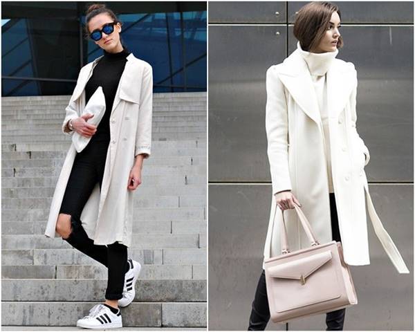 เทคนิคในการใส่เสื้อโค้ทสีขาวให้ดูเก๋ ก็คือการจับคู่กับแฟชั่นไอเท็มแต่ละสไตล์ เช่น ถ้าอยากได้ลุค Overall White ขาวหรูไฮโซ ก็ต้องจับคู่เสื้อผ้าและรองเท้าสีขาวทั้งตัว แล้วคลุมทับด้วยเสื้อโค้ทสีขาวอีกที ให้ขาวสะอาดตาทั้งลุค หรือถ้าอยากมีลูกเล่นเพิ่มสีสันหน่อย ก็จับคู่กับสีฉูดฉาดสัก 1-2 สีในตัว แล้วคลุมด้วยเสื้อโค้ทสีขาวให้ดูโดดเด่นออกมา แต่ถ้าอยากได้แบบเรียบๆ แต่รอด ก็จับคู่ขาว+ดำ โดยเลือกสีดำมาไม่เกิน 2 ชิ้น ที่เหลือเน้นโทนสีขาว จะได้ลุคคูลๆ ที่ดูเรียบแต่เท่ที่สุดแล้วจ้า
