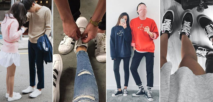 ช่วงเวลาอินเลิฟก็อยากจะมีไอเท็มคู่รักเอาไว้ใส่เป็นคู่กันกับแฟนเนอะ >//< แบบที่หนุ่มสาวเกาหลีเค้าฮิตกัน คือเค้ามักจะมีของคู่รักเอาไว้ติดตัวค่ะ จะเป็นเสื้อผ้า, เคสมือถือ, หรือพวกเครื่องประดับก็ได้ และที่ฮิตสุดๆ ก็ต้องเป็น “รองเท้าคู่รัก” นี่แหละจ้าาาา เพราะในเกาหลีมักจะมีรองเท้าผ้าใบเก๋ๆ ให้เลือกเยอะ ถ้าอยากมีของคู่กันเอาไว้อวดชาวโลกล่ะก็ ชวนคุณแฟนไปซื้อรองเท้ามาใส่คู่กันเลยจ้า น่ารักมากกก เห็นแล้วอิจฉาอย่างแรง #กระทู้นี้คนโสดตายเรียบ
