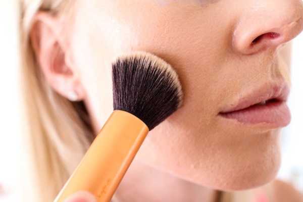 หลังจากลงรองพื้นจนทั่วแล้ว ใช้แปรงค่อยๆ เบลนด์อีกทีเพื่อให้ดูหนาน้อยลง เน้นว่าแค่ปัดๆ โดยเฉพาะตามกรอบหน้า เพื่อให้รองพื้นไม่กองเป็นปื้นๆ จนดูรู้ว่าลงรองพื้นมาก็พอแล้วนะจ๊ะ ไม่ต้องรัวแปรงมากเกินไป ไม่งั้นจะปกปิดไม่อยู่