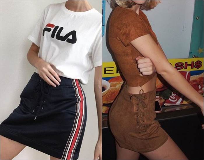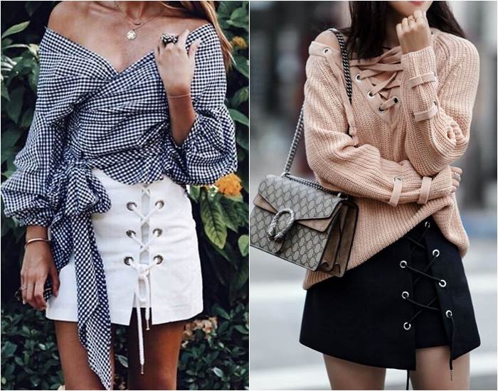 โดยกระโปรงร้อยเชือกแบบนี้นะคะ สามารถเอามามิกซ์ลุคกับเสื้อแบบไหนก็ได้ ถ้าเป็นเสื้อแบบแขนยาว ก็จะได้ลุคคุณหนูๆ หน่อย หากอยากเซ็กซี่ ก็สามารถใส่คู่กับเสื้อเปิดไหล่ หรือสายเดี่ยวก็ได้ แต่ถ้าเป็นสาวชิคๆ แค่ใส่คู่กับเสื้อยืด รองเท้าผ้าใบ ก็ได้ลุคง่ายๆ แต่น่าสนใจกันแล้ว จะแต่งแบบไหนได้บ้าง ตามมาดูเต็มๆ ไปพร้อมกันเลยค่า