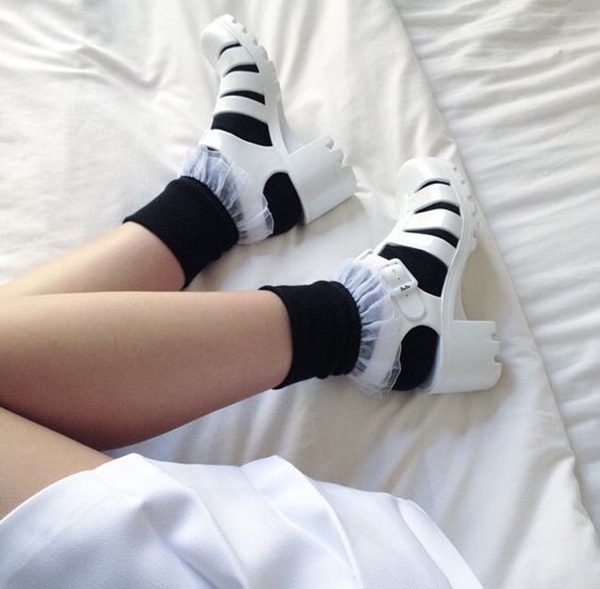 ไม่จำเป็นว่าจะต้องเป็นถุงเท้าขาว ดำ หรือสีเรียบๆ อีกต่อไป แต่ตอนนี้มีทั้งถุงเท้าตาข่าย ถุงน่องแบบสั้น หรือถุงเท้าที่มีออพชั่นเสริมอะไรอีกเพียบ แค่จับมาใส่กับรองเท้าผ้าใบ รองเท้าส้นตึก หรือรองเท้าแตะก็ยังได้ ใส่ตอนนี้ยังไงก็เกิดกว่าแน่นอนค่าซิส!