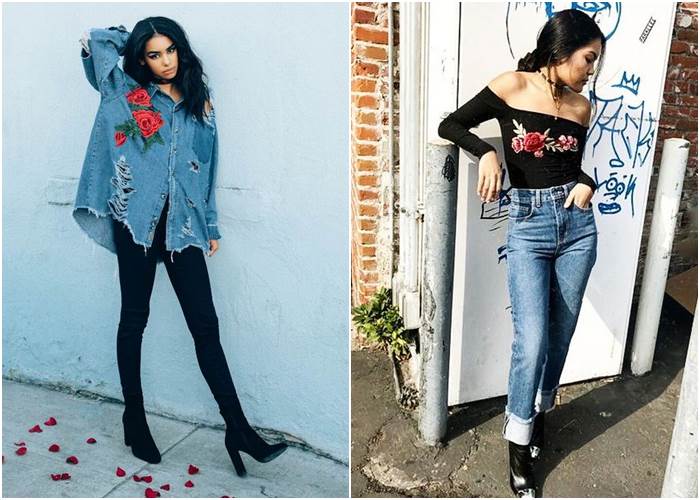 เป็นอีกหนึ่งในแฟชั่นสไตล์โบฮีเมียน ที่มีความวินเทจเลยนะคะ กับ Embroidered Style หรือแฟชั่นเสื้อผ้า ที่มีการปักลวดลายลงไปบนผ้าแล้วนำมาตัดเย็บเป็นชุดสวยๆ ซึ่งในปี 2017 นี้ จะเน้นเป็นลายปักดอกกุหลาบสีแดงบนพื้นสีดำ ไม่ว่าจะเป็นผ้ายืด หรือผ้าซีทรูก็ล้วนเก๋ แต่ไม่ตกเทรนด์เลย ก็จต้องเป็นบนผ้ายีนส์เลยล่ะค่ะ