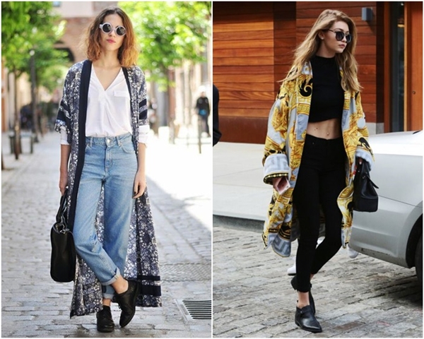 เป็นกระแสฮิตกันอยู่พักใหญ่ สำหรับแฟชั่นเสื้อคลุมกิโมโนตัวยาว ที่ฉีกกฎความเป็นเสื้อคลุมตัวนอก ด้วยการใช้เนื้อผ้าบางๆ เช่น ผ้าซาติน มาทำเป็นเสื้อคลุมเก๋ๆ ใส่แล้วไม่ร้อน แต่สไตล์มาเต็ม! โดยใช้ลวดลายที่บ่งบอกถึงความเป็นตะวันออก ก่อนจะกลายเป็นลายที่แตกต่างออกไปทั้งแบบโมเดิร์นขึ้น ลายกราฟิก เป็นต้น แต่ถ้าจะให้สวยคลาสสิกก็ต้องพวกลายดอก ลายที่ดูแล้วคล้ายกับกิโมโนจริงๆ นั่นแหละค่ะ