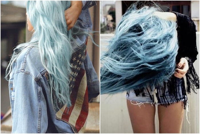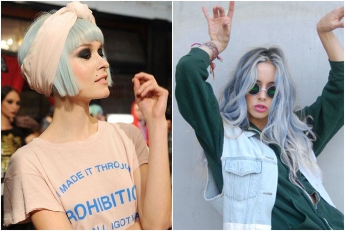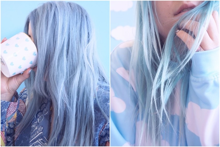ช่วงนี้ความวินเทจยังไม่จบไม่สิ้นนะจ๊ะสาวๆ นอกจากเสื้อผ้าจะวินเทจแล้ว งานผมเราก็ต้องอย่าให้พลาด! สีผมดำแบบเริ่ดๆ ก็ฮิตกันมาได้นานประมาณนึงแล้ว ใครเริ่มเบื่อๆ ผมดำ อยากจะทำผมให้เข้ากับเทรนด์วินเทจ แต่นึกไม่ออกว่าจะจัดสีอะไรดี?! ลองสีฟ้าพาสเทลดูค่ะ เป็นแบบฟ้าอ่อนๆ ไล่เฉดช่วงปลายผม หรือจะฟ้าทั้งหัวก็ได้ถ้าใจพอ! เวลาเซ็ตให้ดูวินเทจนิดๆ เซอร์หน่อยๆ มันอร่อยมากแกร๊!!
