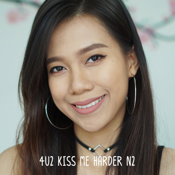 4U2 KISS ME HARDER N2 เบอร์นี้คล้าย N1 เลยเนอะ แต่สีนี้จะอมชมพูค่ะ สวยสุภาพเว่อร์ เหมาะกับคนที่ไม่ชอบสีชมพูหวานๆ แบ๊วๆ อยากได้สีที่ทาได้ทุกวันอะไรแบบนี้