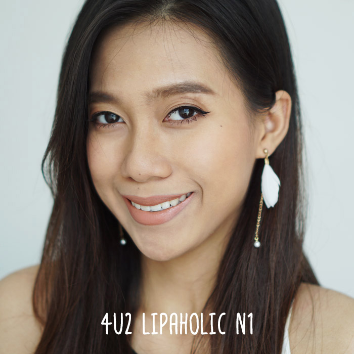 เวิ่นเว้อมานานนม มาสวอชสีบนปากกันเลยดีกว่าเธอ เริ่มกันที่สีแรก 4U2 Lipaholic N1 สีที่ทาบนปากจะเป็นนู้ดน้ำตาลๆ ค่ะ แต่ไม่ได้น้ำตาลจ๋า มันมีความอมส้มนิดหน่อย ทาแล้วคือได้ลุคสวยสุภาพสุดๆ