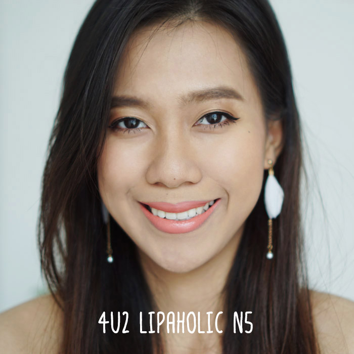 เธอเห็นความยิ้มแหยของฉันไหม 55555 4U2 Lipaholic N5 เป็นสีที่ฉันทาไม่ได้ ดูลอยมาก แต่เราเชื่อว่าคนที่ผิวขาวทาแล้วสวย เพราะเป็นสีคอรัลๆ แบบที่สายแบ๊วจะชอบกัน