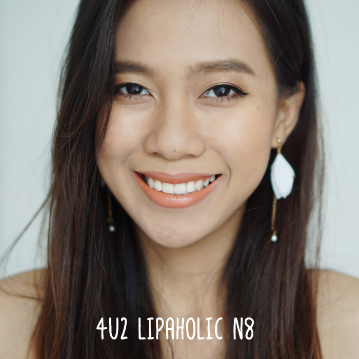 4U2 Lipaholic N8 เป็นสีส้มแบบชาไทยอ่ะ สีแปลกดีค่ะ สวยแบบแปลกๆ คนทาก็เหมือนกันค่ะ ไม่ใช่สวยนะ… แต่แปลก 55555