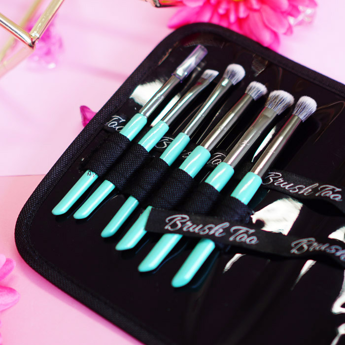 แปรงของเค้ามีทั้งหมด 10 แบบด้วยกันค่ะ เป็นขนสังเคราะห์นุ่มๆ ใส่มาในกระเป๋าสีเขียวมิ้นท์ดูมุ้งมิ้งน่ารักน่าใช้ ตัวแปรงมีสายรัดยางยืดเรียงช่วยจัดให้เป็นระเบียบ และมีโบว์สีดำโลโก้ Brush Too เอาไว้ผูกปิดกระเป๋าค่า น่ารักไหมล่ะ~
