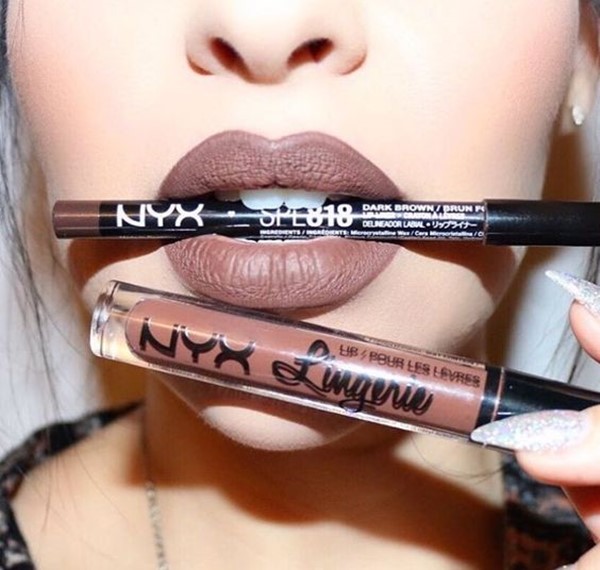 8. NYX Lip Lingerie #Beauty Mark + NTX Slim Lip Pencil #Dark Brown