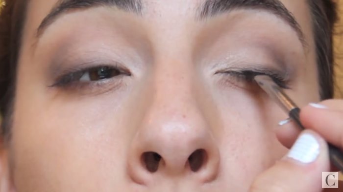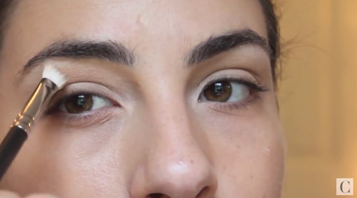 3. ใช้แปรงแตะอายแชโดว์เนื้อแมตต์สีน้ำตาลกลางๆ คัดเบ้าตาโดยเน้นที่ช่วงหางตา